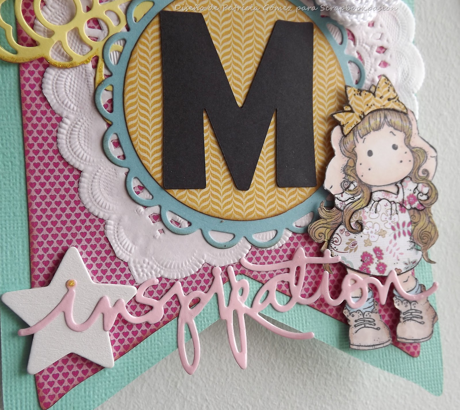 Uno de los papeles, lleva estampado una blonda, en color verde (dicha blonda está hecha en foam mediante el troquel Cheery Lynn - French Pastry Doily )